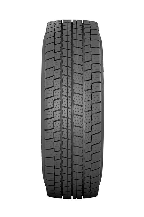 Протекторный рисунок представляет собой комбинацию из массивных блоков, образующих четыре продольных ребра. Такая компоновка обеспечивает топливную экономичность и износостойкость при длительном движении с высокой нагрузкой, наряду с надежностью сцепных свойств. Они остаются таковыми и на снегу и мокром покрытии благодаря использованию большого количества ламелей с Z-образными краями, которые позволяют шине лучше цепляться за такие поверхности. При этом форма прорезей обеспечивает повышение стабильности сцепных свойств и курсовой стабильности в этих условиях.