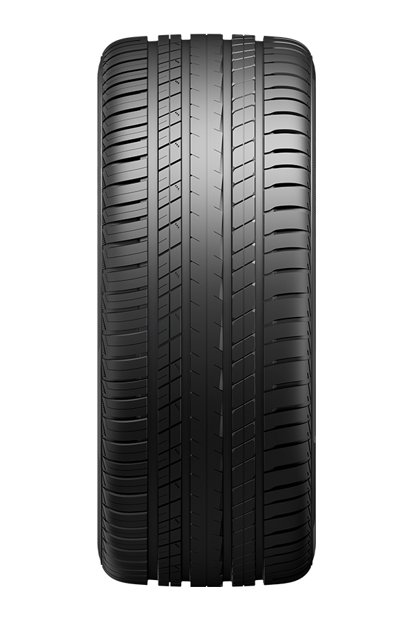 Протекторный рисунок отличает массивность и жесткость большинства элементов. Речь идет, прежде всего, о широком сдвоенном ребре посередине. С его помощью достигаются быстрые и точные реакции на движение рулем, обеспечивается курсовая стабильность, уменьшается сопротивление качению и неравномерность износа. В свою очередь, массивные плечевые блоки усиливают эти свойства при маневрировании и продольных ускорениях. На мокрой дороге шина остается эффективной благодаря эластичной резиновой смеси на основе диоксида кремния и наличию в протекторном рисунке многочисленных ламелей и широких дренажных канавок.