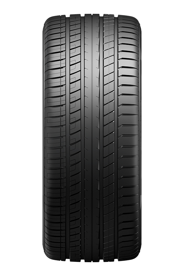 Асимметричный протекторный рисунок имеет значительную полезную площадь, что вместе с оптимизацией профиля беговой части протектора увеличивает пятно контакта и обеспечивает равномерность распределения нагрузки по нему. В результате сцепление не только усиливается, но и становится более стабильным, значительно облегчая процесс управления автомобилем. Этот эффект также обеспечивается жесткостью широкого сдвоенного ребра посередине и массивными плечевыми блоками. Они повышают точность в управлении и курсовую стабильность на большой скорости.